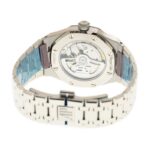 The strap is also made of stainless steel, creating a seamless visual connection with the case, creating a harmonious and unified feel. The AP-branded folding clasp ensures secure wear while enhancing brand recognition, making it both convenient and aesthetically pleasing to wear daily.