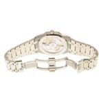 The movement, equipped with a rhodium-toned rose gold rotor dedicated to the 50th anniversary, evokes the commemorative significance. Featuring 33 rubies and 268 precision-engineered components, it operates at a 4 Hz (28,800 vibrations per hour) balance frequency, ensuring precise timekeeping. Its 3.2 mm thickness maintains the collection’s ultra-thin heritage. Furthermore, it offers a guaranteed minimum power reserve of 52 hours and displays the hours, minutes, and date, demonstrating both practicality and technical sophistication.