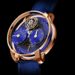 With a height of 13.75 mm, caliber JCAM56 is the slimmest Astronomia-type movement Jacob & Co. has ever designed, an accomplishment given its vertical nature. It features a total of 552 components, revolutionizes the régulateur display and adds “Inspired by the Impossible” horological performance.