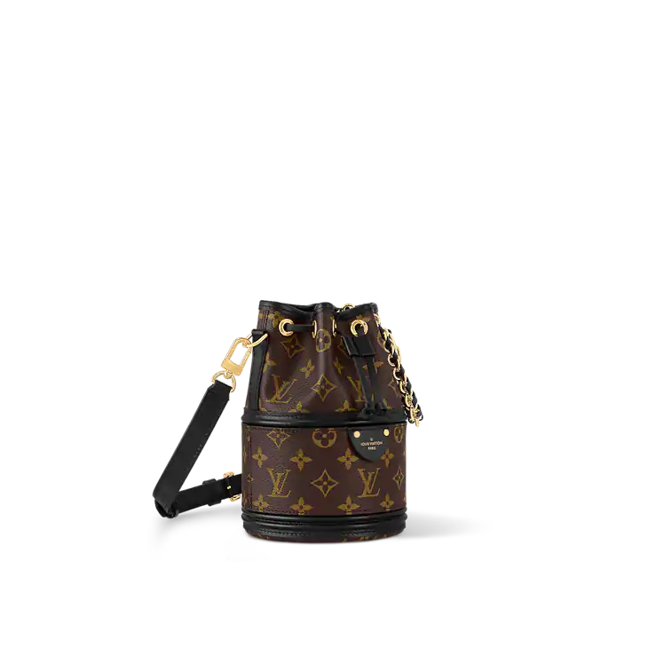 The Canoé bucket bag in Monogram canvas is a fusion of two iconic Louis Vuitton models: the historic Noé and the fashionable Cannes. With its small proportions, Cannes-inspired molded bottom, and Noé drawstring, it perfectly combines style with functionality. The braided chain and leather strap, both detachable, give carry options.