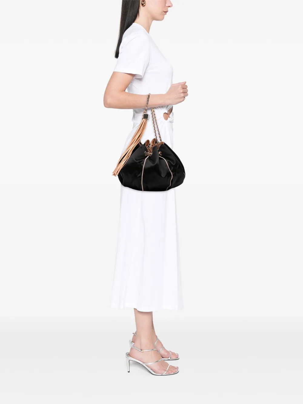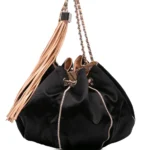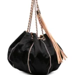 • leather woven chain strap with tassel detail