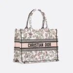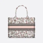The Dior Book Tote is a quintessential example of Dior’s aesthetic. Capable of holding all your everyday essentials, it features a full-coverage pink multicolored Millefori embroidery by Pietro Ruffo, with pastel hues inspired by Baroque paintings. This medium-sized tote bag is adorned with the Christian Dior Paris logo on the front, showcasing the brand’s signature craftsmanship, and is suitable for carrying by hand or over the shoulder.