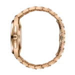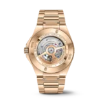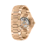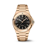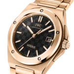 The Ingenieur Automatic 40 features an 18K 5N gold case and an integrated 18K 5N gold bracelet. It features a black dial, 18K gold hour markers, and gold-plated hands.