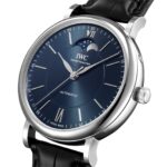 Highlights: The Portofino Automatic Moon Phase (IW459402) is housed in a classic stainless steel case. The silver moon harmonizes beautifully with the blue dial, as well as the rhodium-plated hands and appliqués. This casual yet elegant watch is fitted with a hand-colored black alligator leather strap.