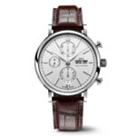 Highlights: The Portofino Chronograph 42 (IW391027) takes its design cues from the 1960s, with elegantly sporty push-buttons and chronograph displays. The stainless steel chronograph watch has a convex sapphire glass and rhodium-plated appliqués on its silver-plated dial. It is powered by the tried and tested self-winding 75320 caliber with its 44-hour power reserve and comes with a dark brown alligator leather strap.