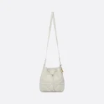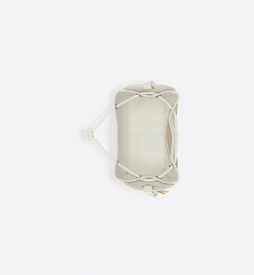 This D-Motion handbag, a brand new addition to the Winter 2025 collection, features a stylish yet practical bucket design. Crafted from ivory lambskin with large cannage stitching, this supple piece boasts a drawstring closure that opens to reveal a spacious interior compartment with one zip pocket to hold all your essentials. This medium-sized bag is adorned with a pale gold-finished DIOR charm and features an adjustable, sliding shoulder strap for either shoulder or crossbody wear.