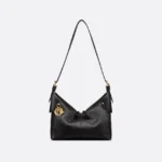 The Dior Voyage handbag, a new addition to the 2026 Resort collection, boasts a balanced and harmonious silhouette with soft lines and exquisite details. Crafted from black wrinkled calfskin, this bag features stitching in the Flat Macrocannage pattern, a reinterpretation of the brand’s classic motif. Its supple shape is enhanced by gold-tone DIOR charms and refined leather details, adding dimension to the design. The main compartment features a secure and practical two-way zip closure. This medium-sized bag also includes a top handle with an adjustable buckle, allowing for shoulder carrying and making it ideal for everyday wear.