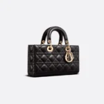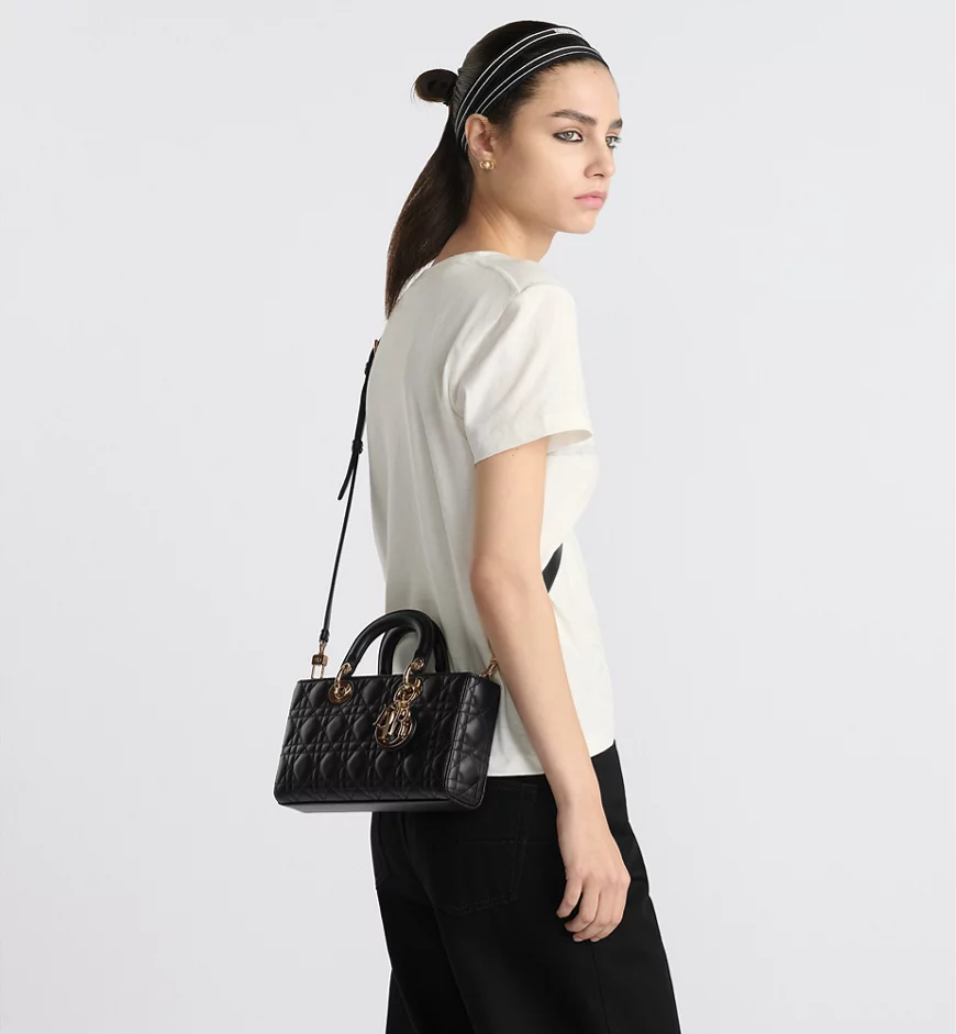 The Lady D-Joy handbag embodies Dior’s interpretation of elegance and beauty. This sophisticated and timeless design showcases the classic minimalist aesthetic of the Lady Dior collection. Crafted from black lambskin with Cannage stitching and adorned with a pale gold-finished DIOR charm, this medium-sized Lady D-Joy handbag features a detachable chain shoulder strap and an additional adjustable and detachable leather shoulder strap, allowing for hand-carrying, shoulder-carrying, or crossbody wear – a perfect choice for everyday looks.