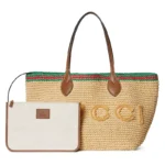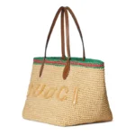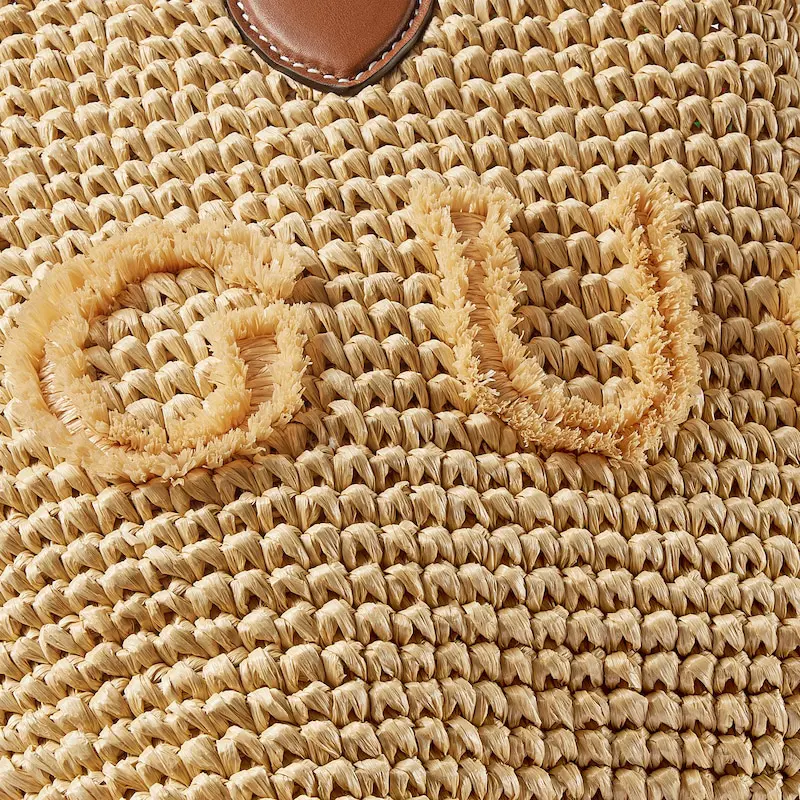 This medium tote is crafted from raffia-effect viscose and embellished with signature Web piping and Gucci embroidery. Its structured shape and textured feel showcase the brand’s meticulous attention to detail and timeless design codes.