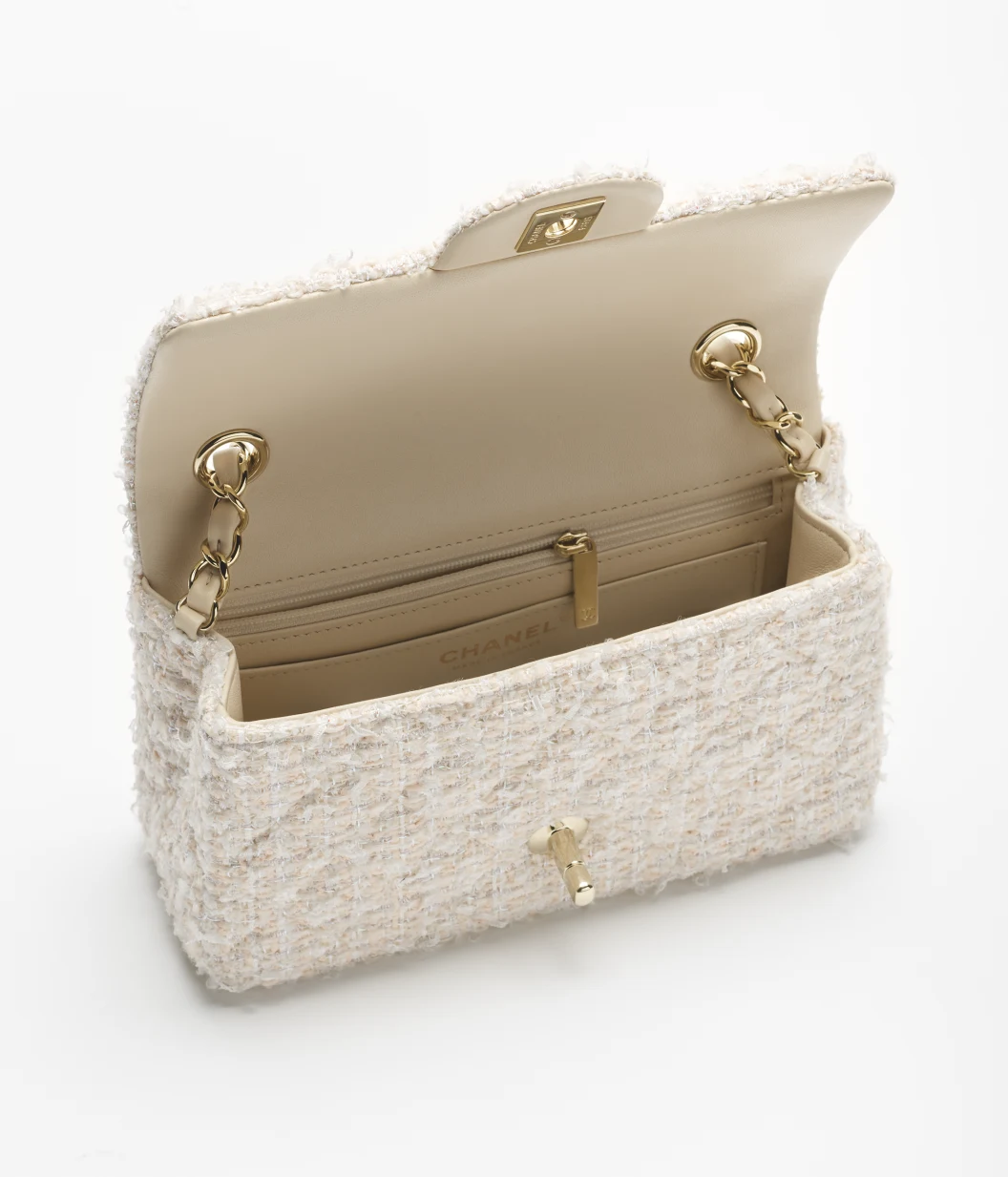 Be the first to review “Mini Classic Bag Tweed & Gold-Tone Metal Beige and white” Cancel reply