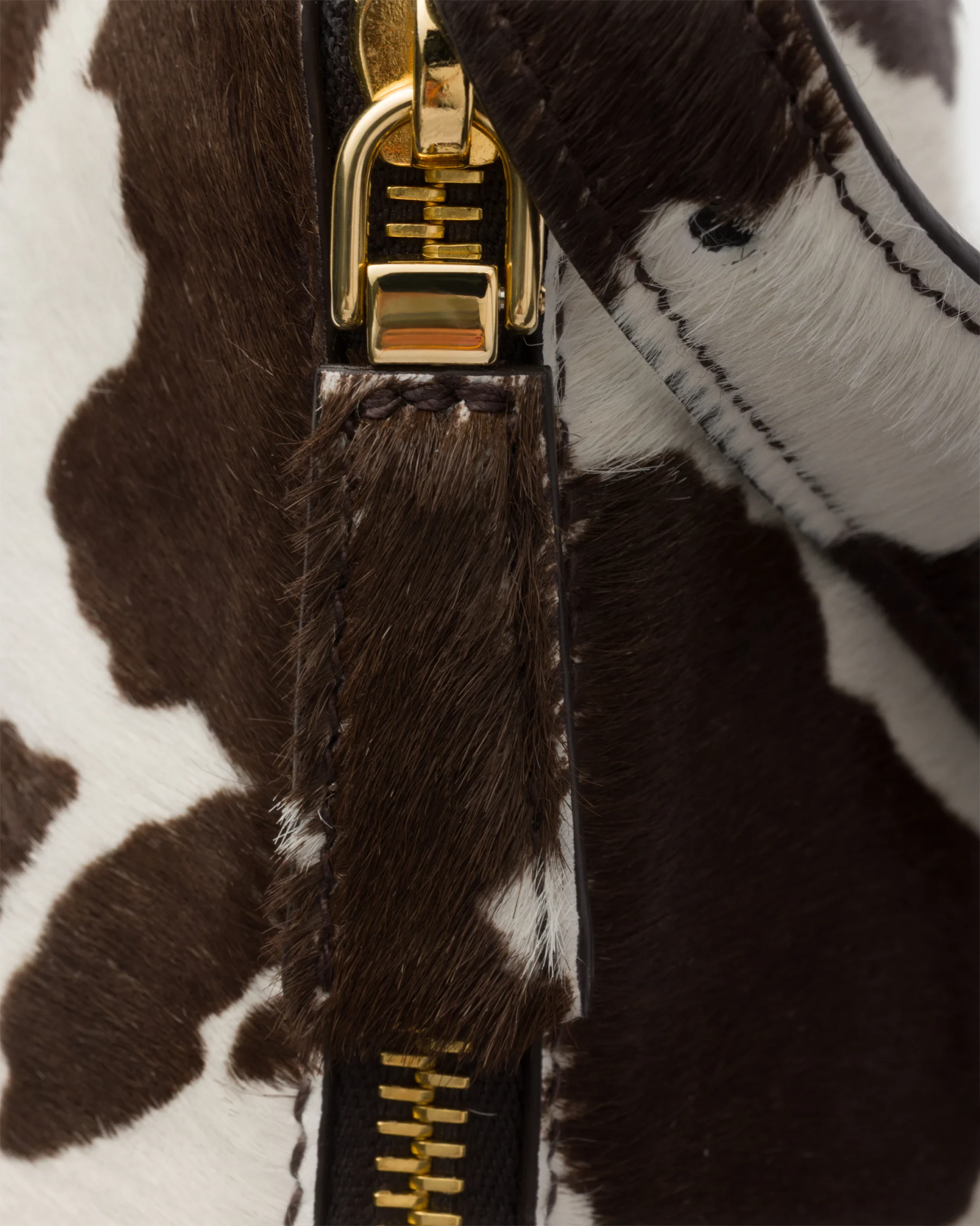 The Prada Aimée expresses a bold, modern attitude. The supple Hobo silhouette is reimagined in animal-print leather and embellished with gold-tone hardware.