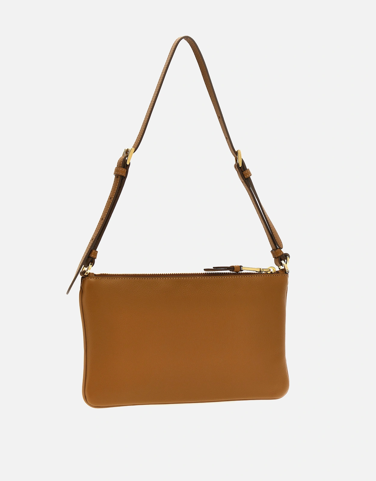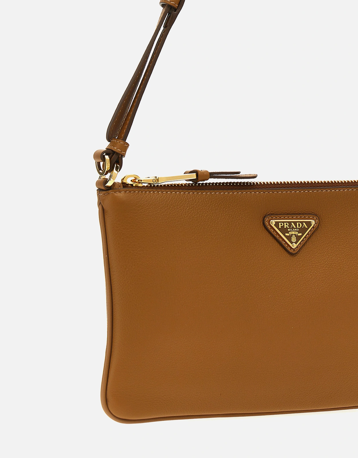 Soft calfskin shoulder bag with enameled metal triangle logo on the front