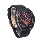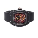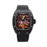 The Richard Mille RM26-02 features a power reserve indicator and tourbillon function, powered by a manual-winding movement. The watch has a 40mm ceramic case and a transparent dial. Launched in 2015, this limited edition of 25 pieces showcases the brand’s commitment to precision craftsmanship.