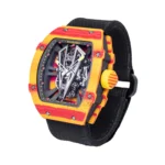 The Richard Mille RM27-03, launched in 2017, is a limited edition of 50 pieces. This watch features a 40mm case made of carbon fiber (TPT) with a transparent dial. It houses a manual-winding tourbillon movement offering high precision. This series of watches is renowned for its lightweight design and durability, making it suitable for performance-oriented users.