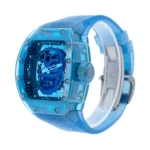Richard Mille RM52-01 (ref: RM52-04) features sapphire crystal and a tourbillon function. Launched in 2021, it is limited to 5 pieces. This watch is crafted from sapphire crystal, has a transparent dial, a diameter of 43mm, and is powered by the manual-winding RM052 movement. This collection is renowned for its unique design and meticulous craftsmanship, showcasing the brand’s pursuit of both technology and aesthetics.