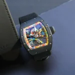 Launched in 2016, the Richard Mille RM68-01 features a tourbillon function. This 43mm carbon fiber (TPT) watch houses the manual-winding RM68-01 movement. The transparent dial showcases its internal mechanics, and it was produced in a limited edition of 30 pieces. Combining advanced materials technology with meticulous craftsmanship, this timepiece is ideal for collectors interested in high-end timepieces.