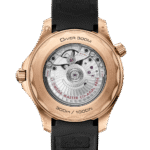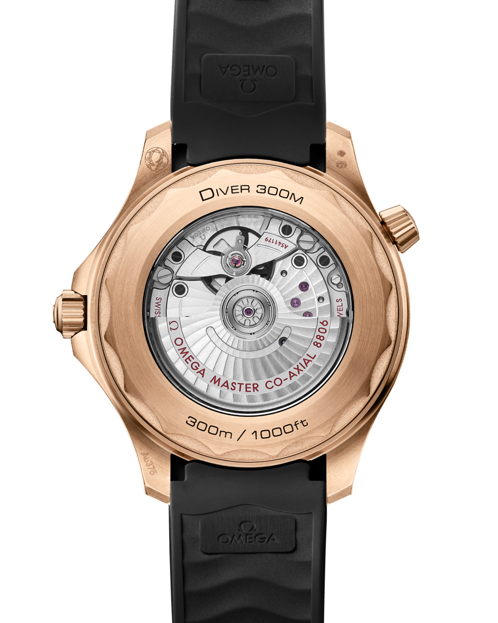 This 42mm watch is cast in OMEGA’s proprietary bronze gold and features a burgundy oxalate-anodized aluminum bezel ring with a diving scale treated with a vintage-style luminescent coating.
