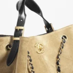 绒面效果小牛皮、亮面小羊皮和金色金属