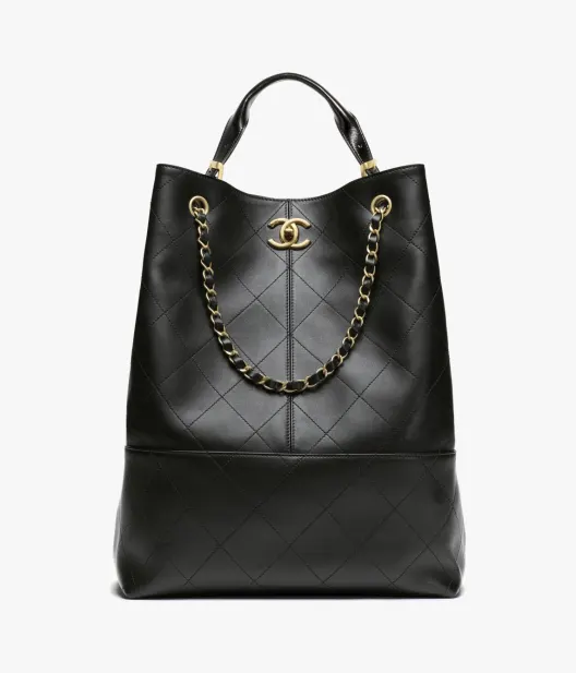 Shopping Bag Suede-effect calfskin, shiny lambskin, and gold-tone metal Beige and black