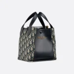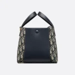 The Signature Bucket Bag is a brand new style for Summer 2025, showcasing a versatile and soft design. Crafted in blue Dior Oblique jacquard and finished in smooth calfskin of the same color, it features a vintage gold-plated Christian Dior Paris logo on the front. The spacious interior includes a slip pocket with snap closures and a strap for securely storing essentials. This smaller version features a leather top handle and an adjustable and detachable shoulder strap for easy carrying by hand, over the shoulder, or crossbody.