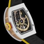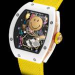 Around the Smiley’s radiant face, an array of miniature sculptures takes possession of the RM 88 Automatic Tourbillon Smiley’s movement, forming and reforming a surreal scene, brimming with fun and enthusiasm and demonstrating true mastery of the infinitely small. Light as it may seem, the creation of this ballet was a technical challenge of the highest order. But the dream has now become reality, with attention to detail and perfection taken to the utmost, breathing life into a veritable smile mechanism.