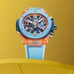 By developing its own automatic chronograph movement, Hublot wanted it to be – like all of its creations – the first, different and unique. As the soul of the watch, this movement with an “open heart” reveals its completely re-imagined design, with double clutch system and column-wheel from the dial side as well as a 72-hour power reserve. Its construction of 354 components has been simplified as much as possible to improve reliability and robustness